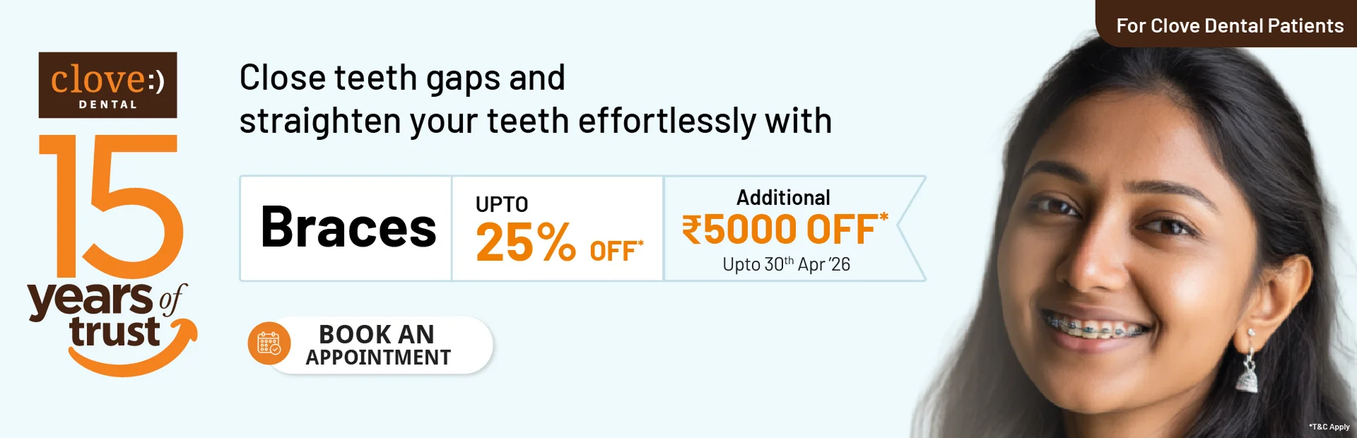 You can use our Clinic Locator (Find a Clinic) on the website to find the nearest Clove Dental clinic with directions, contact numbers, and timings.