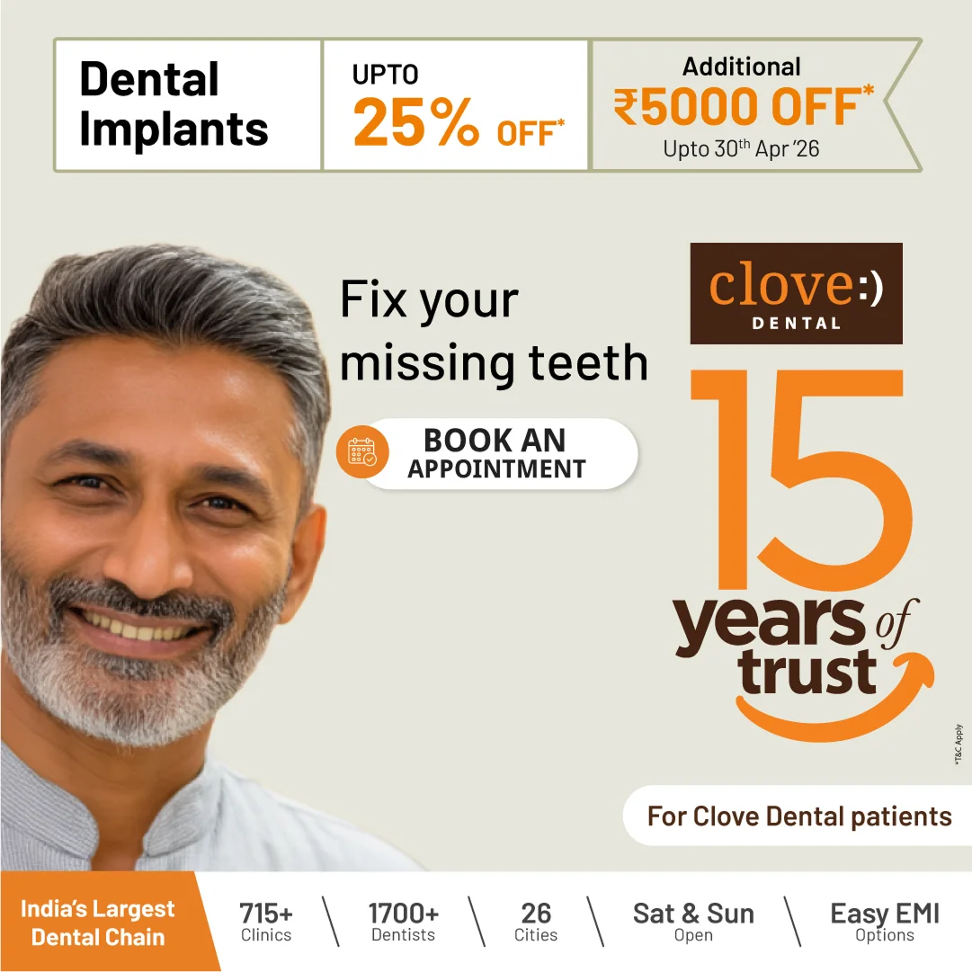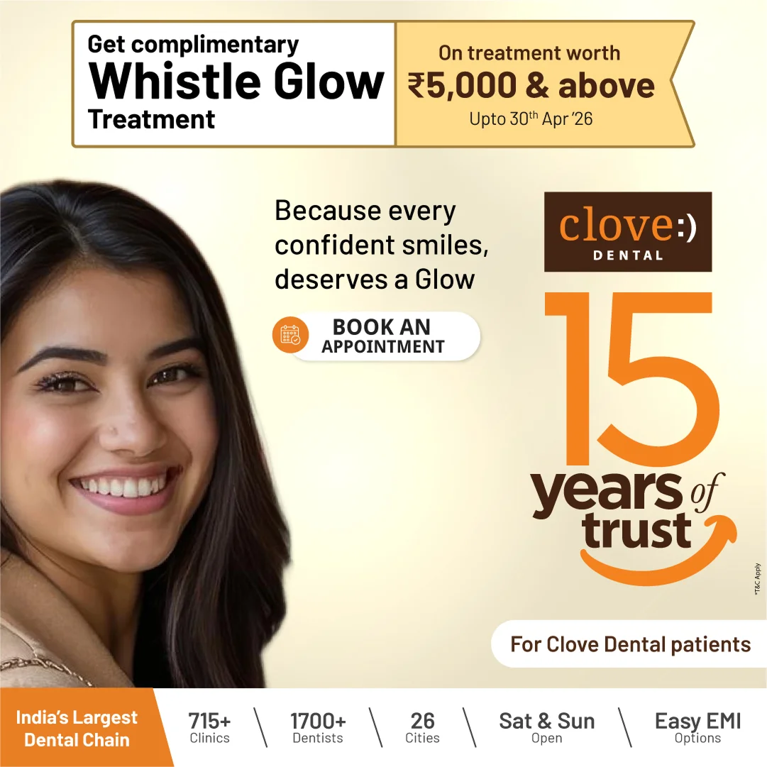 Clove Dental has 715+ clinics across major cities in India, including Delhi NCR, Hyderabad, Bengaluru, Chennai, Mumbai, and more.