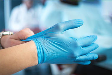 Hands are properly sanitised and dried before donning gloves. A new pair of gloves is worn for every patient. Gloves are even changed if they appear to be contaminated during the treatment.